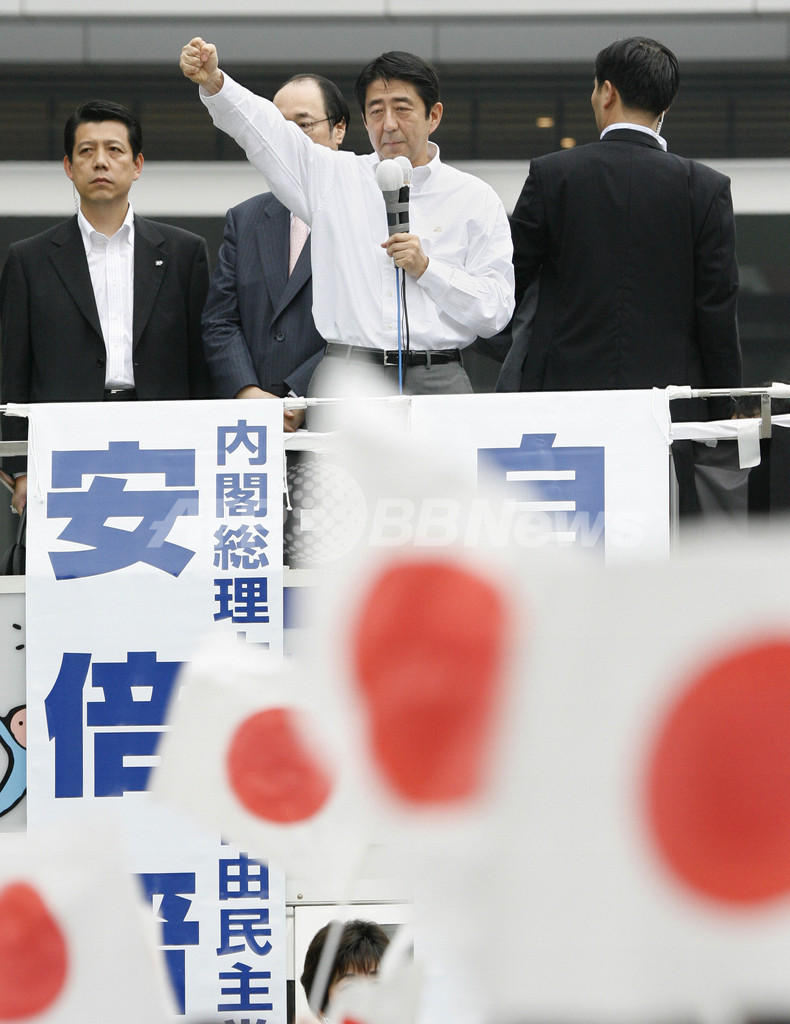 ニュース 政治・経済 参院選スタート、安倍首相は秋葉原で第一声 2007年7月12日 14:23 発信地:東京 [ アジア・オセアニア 東京 ] このニュースをシェア ‹ › ❮ 1/6 ❯ 2007年7月12日、東京のJR秋葉原駅前で街頭演説を行った安倍晋三(Shinzo Abe)首相(自民党総裁)。(c)AFP/Toru YAMANAKA 画像作成中 ! 【7月12日 AFP】29日に行われる参議院選挙が12日、公示された。安倍晋三(Shinzo Abe)首相は、東京のJR秋葉原駅前で街頭演説を行った。同首相は「連立与党が敗北すれば改革が後退する」と訴え、連立政権の命運をかけた選挙戦の火ぶたを切った。(c)AFP 政治・経済 一覧へ> メディア・報道関係・法人の方向け 写真・動画 購入のお問合せ>
