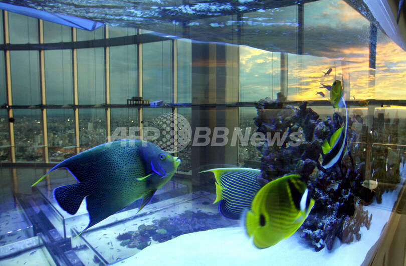 ニュース ライフ こぼれ話 夕日をバックに泳ぐ熱帯魚が楽しめる「天空の水族館」が出現 2007年7月12日 15:28 発信地:東京 [ アジア・オセアニア 東京 ] このニュースをシェア ‹ › ❮ 3/3 ❯ 2007年7月11日、六本木ヒルズ森タワー(Mori tower)52階の展望フロアに出現した、熱帯魚などを展示する「スカイアクアリウム(Sky Aquarium)」。(c)AFP/KAZUHIRO NOGI 画像作成中 ! 【7月12日 AFP】六本木ヒルズ森タワー(Mori tower)52階の展望フロア「東京シティビュー」に、熱帯魚などを展示する「スカイアクアリウム(Sky Aquarium)」が出現した。夕日をバックに熱帯魚が泳ぐ幻想的な光景が楽しめる。公開は7月13日から9月9日まで。(c)AFP ライフ 一覧へ> メディア・報道関係・法人の方向け 写真・動画 購入のお問合せ>