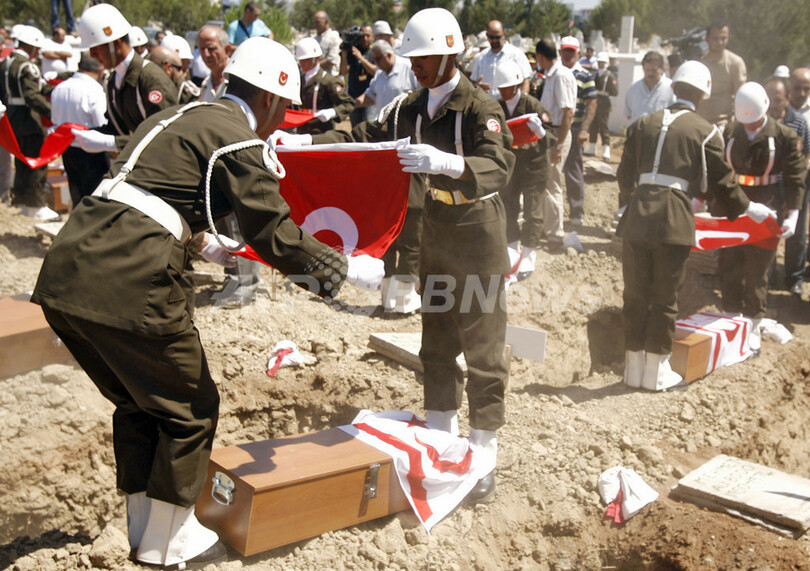 【7月13日 AFP】1974年にトルコが北キプロス・トルコ共和国(北キプロス)に介入した際の混乱で殺害された13人の遺体が12日、ニコシア(Nicosia)北部に埋葬された。30年以上行方不明となっていた人々の合同葬儀が行われるのは、今回が初めて。この合同葬儀で埋葬されたのは、行方不明になっている数百人のうち、身元が確認された最初の人々。キプロスでは、1974年のトルコの介入とそれに先立つ10年に及ぶトルコ系住人とギリシャ系住人との対立で、数百人が現在も行方不明になっている。(c)AFP
