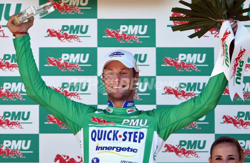 【7月14日 AFP】2007ツール・ド・フランス(2007 Tour de France)、第6ステージ(スミュール・アン・オーソワからブール・アン・ブレス、199.5キロメートル)。クイックステップ・イネリゲティック(Quick Step-Innergetic)のトム・ボーネン(Tom Boonen、ベルギー)は、5時間20分59秒を記録してステージ優勝を果たし、合計141ポイントで再びポイント賞首位に立ちマイヨ・ヴェールを獲得した。