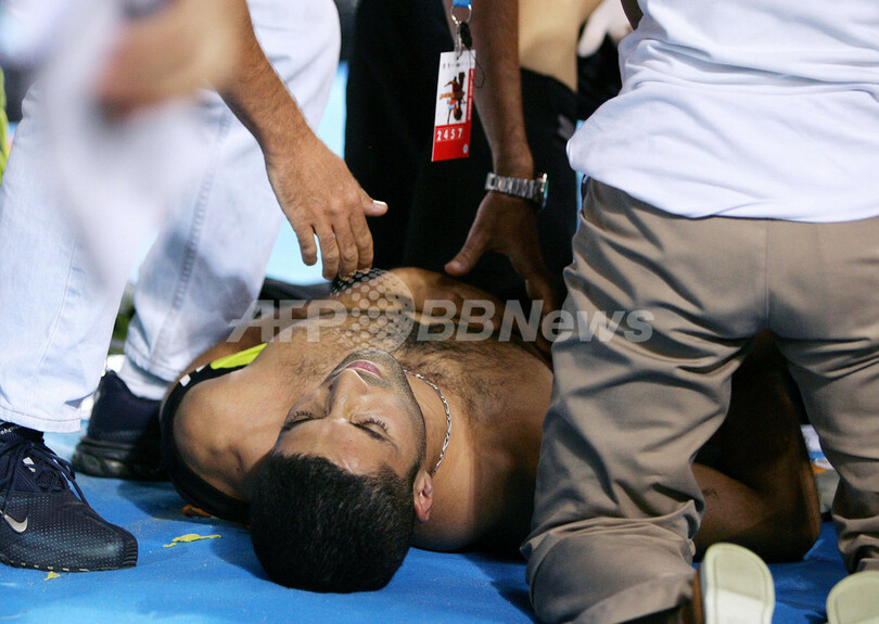 【7月14日 AFP】陸上競技、ゴールデン・リーグ2007(IAAF Golden League 2007)・第3戦、ゴールデンガラ(Golden Gala)。男子走り幅跳びに出場したフランスのサリム・スディリ(Salim Sdiri)に、男子槍投げに出場していたフィンランドのテロ・ピトカマキ(Tero Pitkamaki)が投てきした槍が刺さるという事故が起きた。