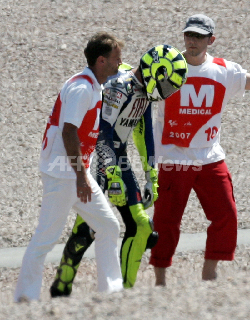 【7月16日 AFP】世界ロードレース選手権(WGP)・第10戦・ドイツGP・MotoGPクラス、決勝。6番グリッドからスタートしたフィアット・ヤマハ(Fiat Yamaha)のバレンティーノ・ロッシ(Valentino Rossi)は、6周目のコーナーでカワサキ・レーシング(Kawasaki Racing)のランディ・ド・プニエ(Randy de Puniet)をかわそうとした際に転倒し、今季初のリタイアに終わった。