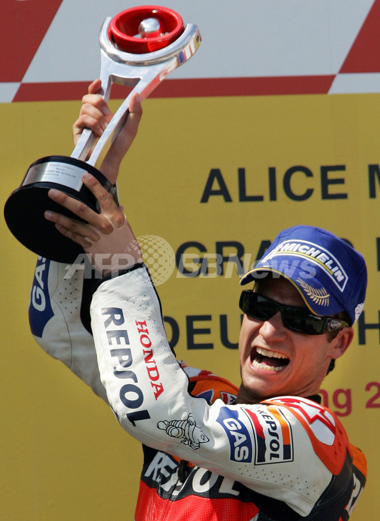 【7月16日 AFP】世界ロードレース選手権(WGP)・第10戦・ドイツGP・MotoGPクラス、決勝。2番グリッドからスタートしたレプソル・ホンダ(Repsol Honda)のダニエル・ペドロサ(Dani Pedrosa)は、41分53秒196を記録して今季初優勝を飾った。