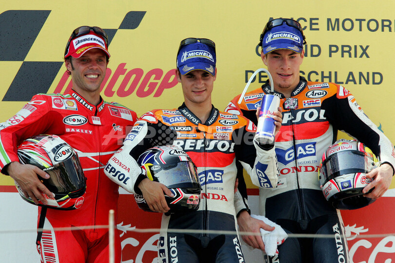 【7月16日 AFP】世界ロードレース選手権(WGP)・第10戦・ドイツGP・MotoGPクラス、決勝。2番グリッドからスタートしたレプソル・ホンダ(Repsol Honda)のダニエル・ペドロサ(Dani Pedrosa)は、41分53秒196を記録して今季初優勝を飾った。