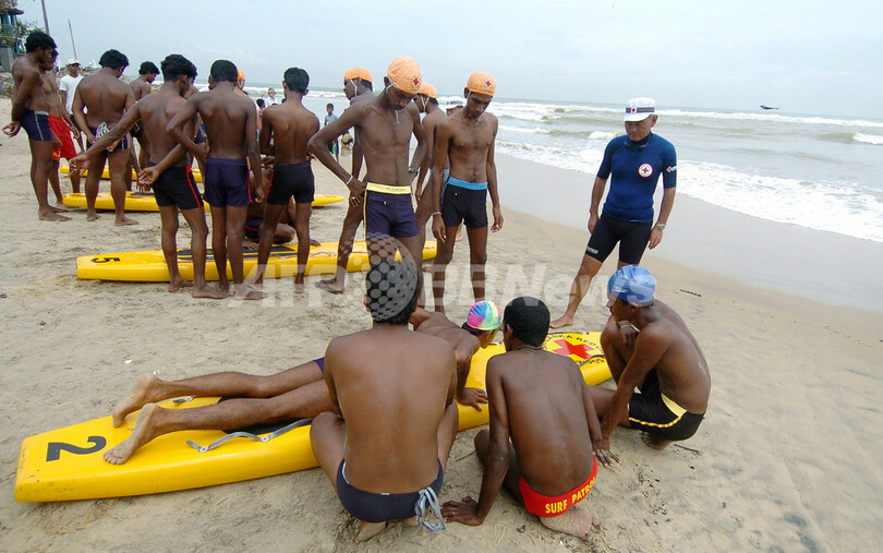 2人はできたばかりの現地の救助隊メンバー16人を対象に、おぼれかかった人の救助方法を伝授している。スリランカでは水難事故の犠牲者は、交通事故と35年続く内戦に次いで多い。