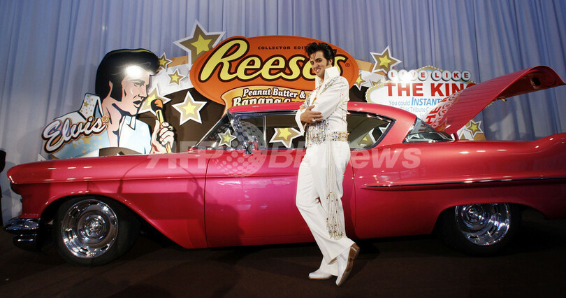 【7月19日 AFP】チョコレート菓子「Reese's」のプロモーションイベントが17日、ニューヨークで開催された。この商品は8月16日に没後30周年を迎える歌手の故エルビス・プレスリー(Elvis Presley)を記念して発売される特別版。同商品はピーナッツバター&バタークリーム味で、ピーナッツバターとバナナ・サンドウィッチが好きなプレスリーに因んだもの。またPR会場には、プレスリーが所有した1957年製の米国車、ピンクのキャデラック(Cadillac)に捧げる車も登場した。(c)AFP