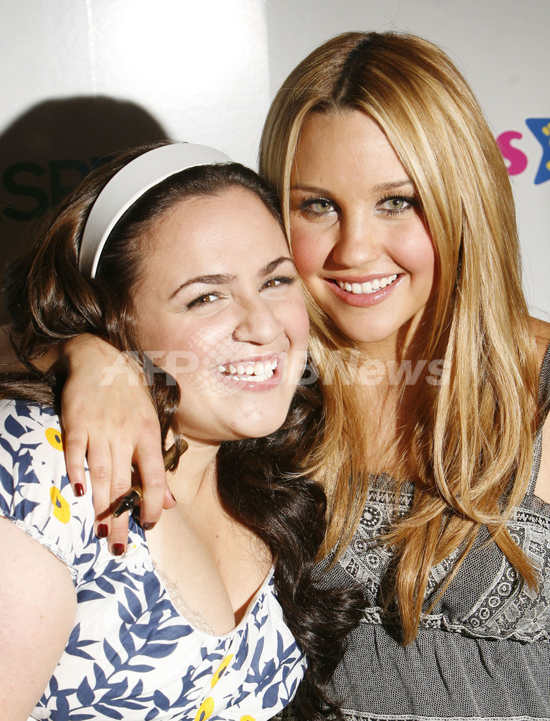 2007年7月18日、タイムズスクエア(Times Square)のトイザらス(Toys“R”Us)で新発売の『ヘアスプレー』人形のプロモーションを行う、映画『ヘアスプレー(Hairspray)』の出演女優ニッキー・ブロンスキー(%%Nikki Blonsky%%、左)とアマンダ・バインズ(%%Amanda Bynes%%)。(c)AFP/Getty Images Amy Sussman