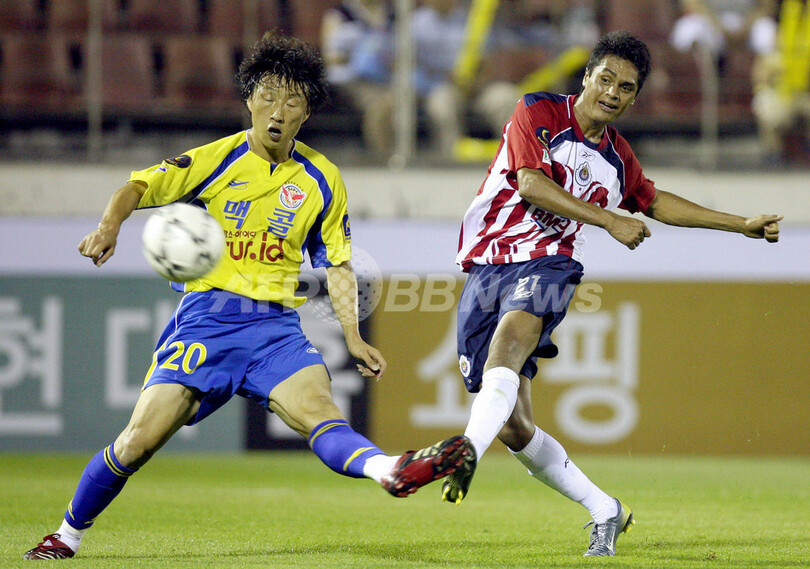 スポーツ サッカー グアダラハラ 城南一和に競り勝つ 2007年7月18日 15:03 発信地:光陽/韓国 [ 韓国・北朝鮮 韓国 ] このニュースをシェア ‹ › ❮ 2/2 ❯ 後半36分に城南一和のキム・ヨンチョル(%%Kim Young Chul%%、左)をかわして決勝点を決めるグアダラハラのセルヒオ・サンタナ(%%Sergio Santana%%)。(c)AFP 画像作成中 ! 【7月18日 AFP】サッカー、ピースカップ(Peace Cup)・グループA、CDグアダラハラ(Club Deportivo Guadalajara)vs城南一和(Seongnam Ilhwa)。試合はグアダラハラが1-0で勝利を収め、グアダラハラは通算成績を2勝1敗としてグループ2位で大会を終えた。(c)AFP サッカー 一覧へ> メディア・報道関係・法人の方向け 写真・動画 購入のお問合せ>