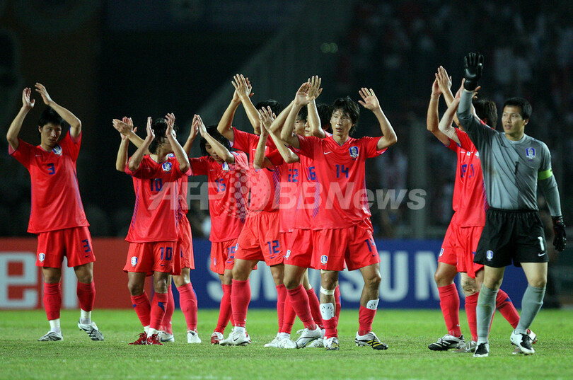 スポーツ サッカー 韓国 インドネシアを破りグループ2位で準々決勝進出 2007年7月18日 22:37 発信地:ジャカルタ/インドネシア [ アジア・オセアニア インドネシア ] このニュースをシェア ‹ › ❮ 1/11 ❯ 試合後に勝利を喜ぶ韓国の選手たち。(c)AFP/Jewel SAMAD 画像作成中 ! 【7月18日 AFP】サッカー、第14回アジアカップ(Asian Cup)・グループD、インドネシアvs韓国。試合は韓国が1-0で勝利を収めて勝ち点を4に伸ばし、グループ2位で準々決勝進出を果たした。(c)AFP サッカー 一覧へ> メディア・報道関係・法人の方向け 写真・動画 購入のお問合せ>