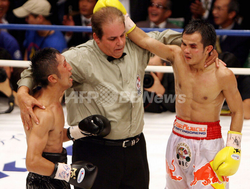 スポーツ スポーツ その他 内藤 ポンサクレック破りWBCフライ級王座を獲得 2007年7月18日 23:02 発信地:東京 [ アジア・オセアニア 東京 ] このニュースをシェア ‹ › ❮ 5/7 ❯ レフリーに止められる内藤とポンサクレック。(c)AFP/TOSHIFUMI KITAMURA 画像作成中 ! 【7月18日 AFP】ボクシング、WBCフライ級タイトル戦。挑戦者の内藤大助(Daisuke Naito、日本)は、同級王者のポンサクレック・ウォンジョンカム(Pongsaklek Wonjongkam、タイ)と対戦。試合は内藤が3-0(115-113、116-113、116-113)の判定でポンサレクから勝利を収め、タイトル奪取に成功した。(c)AFP スポーツ その他 一覧へ> メディア・報道関係・法人の方向け 写真・動画 購入のお問合せ>