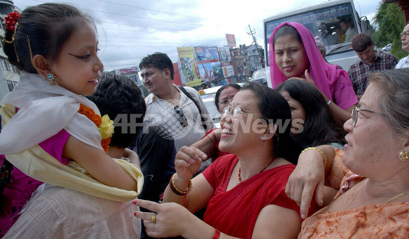 【7月19日 AFP】ネパールで8年前から「クマリ(Kumari、少女の生き神)」としてあがめられてきた10歳の少女Sajani Shakyaちゃんが、伝統に逆らい、ドキュメンタリー番組のプロモーションのため渡米したことを理由に、その地位をはく奪されることがわかった。通常、クマリは思春期を迎えるまでその地位に留まる。(c)AFP