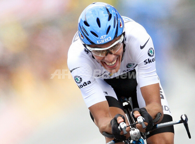 【7月22日 AFP】2007ツール・ド・フランス(2007 Tour de France)、第13ステージ(アルビからアルビ、54キロメートル)・個人タイムトライアル。ディスカバリーチャンネル・プロサイクリングチーム(Discovery Channel Pro Cycling Team)のアルベルト・コンタドール(Alberto Contador、スペイン)は、首位と2分18秒差の1時間08分52秒を記録して7位でステージを終え、合計タイム58時間49分10秒の総合3位で新人賞(マイヨ・ブラン)の座を守った。(c)AFP