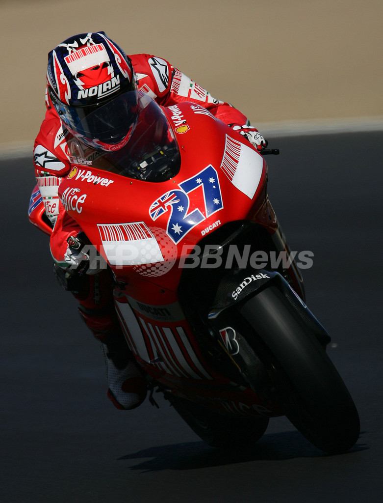 【7月22日 AFP】世界ロードレース選手権(WGP)・第11戦・米国GP・MotoGPクラス、フリー走行3回目。ドゥカティ・マールボロ(Ducati Marlboro)のケーシー・ストーナー(Casey Stoner)は、30周を走行してベストラップ1分22秒365のトップタイムを記録した。