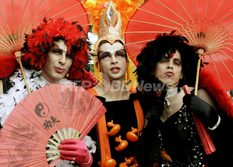 ニュース ライフ こぼれ話 ドイツで華やかにゲイ・プライド・パレード 2007年7月22日 21:05 発信地:フランクフルト/ドイツ [ ヨーロッパ ドイツ ] このニュースをシェア ‹ › ❮ 1/8 ❯ 2007年7月21日、ドイツのフランクフルトで開かれたゲイパレード「クリストファー・ストリート・デイ(Christopher Street Day)」でポーズを取る参加者。(c)AFP/DDP MARTIN OESER 画像作成中 ! 【7月22日 AFP】ドイツのフランクフルトで21日、同性愛者の誇りを示すゲイ・プライド・パレード「クリストファー・ストリート・デイ(Christopher Street Day)」が行われた。ゲイやレズビアンのカップルが華やかなコスチュームをまとい、同性愛者の権利向上を訴えて通りをパレードした。(c)AFP ライフ 一覧へ> メディア・報道関係・法人の方向け 写真・動画 購入のお問合せ>