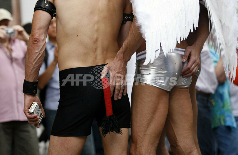 ニュース ライフ こぼれ話 ドイツで華やかにゲイ・プライド・パレード 2007年7月22日 21:05 発信地:フランクフルト/ドイツ [ ヨーロッパ ドイツ ] このニュースをシェア ‹ › ❮ 2/8 ❯ 2007年7月21日、ドイツのフランクフルトで開かれたゲイパレード「クリストファー・ストリート・デイ(Christopher Street Day)」の参加者。(c)AFP/DDP MARTIN OESER 画像作成中 ! 【7月22日 AFP】ドイツのフランクフルトで21日、同性愛者の誇りを示すゲイ・プライド・パレード「クリストファー・ストリート・デイ(Christopher Street Day)」が行われた。ゲイやレズビアンのカップルが華やかなコスチュームをまとい、同性愛者の権利向上を訴えて通りをパレードした。(c)AFP ライフ 一覧へ> メディア・報道関係・法人の方向け 写真・動画 購入のお問合せ>