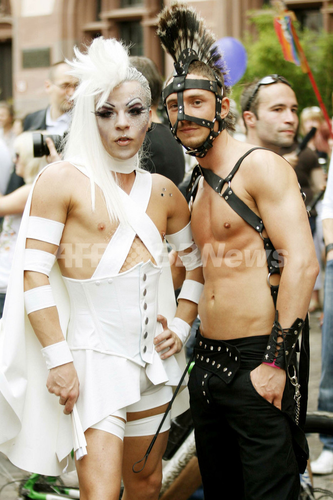 ニュース ライフ こぼれ話 ドイツで華やかにゲイ・プライド・パレード 2007年7月22日 21:05 発信地:フランクフルト/ドイツ [ ヨーロッパ ドイツ ] このニュースをシェア ‹ › ❮ 5/8 ❯ 2007年7月21日、ドイツのフランクフルトで開かれたゲイパレード「クリストファー・ストリート・デイ(Christopher Street Day)」の参加者。(c)AFP/DDP MARTIN OESER 画像作成中 ! 【7月22日 AFP】ドイツのフランクフルトで21日、同性愛者の誇りを示すゲイ・プライド・パレード「クリストファー・ストリート・デイ(Christopher Street Day)」が行われた。ゲイやレズビアンのカップルが華やかなコスチュームをまとい、同性愛者の権利向上を訴えて通りをパレードした。(c)AFP ライフ 一覧へ> メディア・報道関係・法人の方向け 写真・動画 購入のお問合せ>
