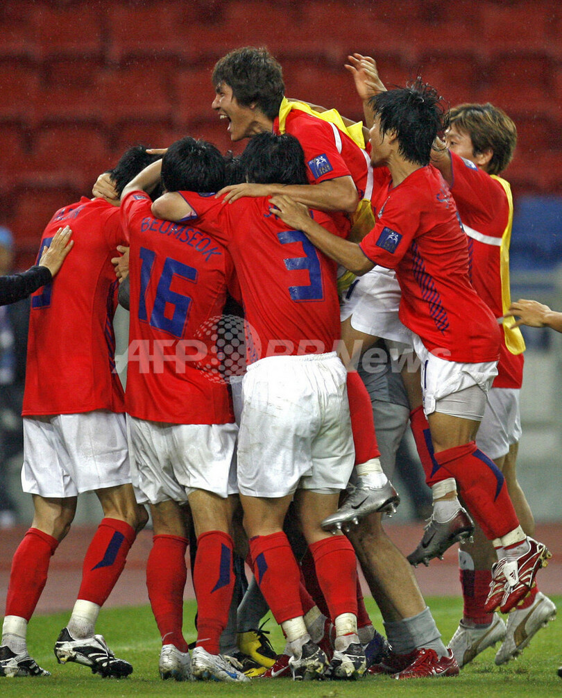 スポーツ サッカー 韓国 イランとのPK戦を制し2大会ぶりの4強入り 2007年7月23日 0:41 発信地:クアラルンプール/マレーシア [ アジア・オセアニア マレーシア ] このニュースをシェア ‹ › ❮ 1/18 ❯ PK戦を制し歓喜する韓国の選手。(c)AFP/ROSLAN RAHMAN 画像作成中 ! 【7月23日 AFP】サッカー、第14回アジアカップ(Asian Cup)・準々決勝、イランvs韓国。試合は0-0で迎えた延長戦でも決着がつかず、PK戦の末4-2で韓国が勝利し、2大会ぶりの4強入りを果たした。(c)AFP サッカー 一覧へ> メディア・報道関係・法人の方向け 写真・動画 購入のお問合せ>