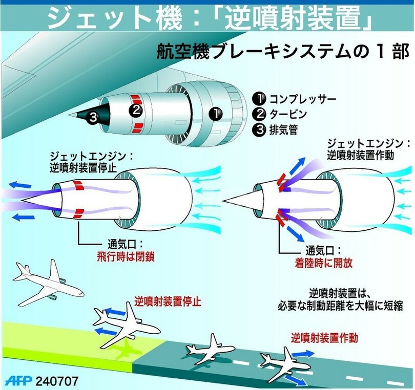 ニュース 社会 図解 ジェットエンジンの逆噴射装置 2007年7月23日 14:03 発信地:サンパウロ/ブラジル [ 中南米 ブラジル ] このニュースをシェア 7月17日にブラジルで起こったエアバス320型機の墜落事故において作動していなかったと報じられた「逆噴射装置」というジェット機のブレーキ装置を示したもの。(c)AFP 【7月23日 AFP】図は、7月17日にブラジルで起こったエアバス320(Airbus 320)型機の墜落事故において作動していなかったと報じられた「逆噴射装置」というジェットエンジンのブレーキ装置を示したもの。(c)AFP<ニュース解説記事一覧へ> 社会 一覧へ> メディア・報道関係・法人の方向け 写真・動画 購入のお問合せ>