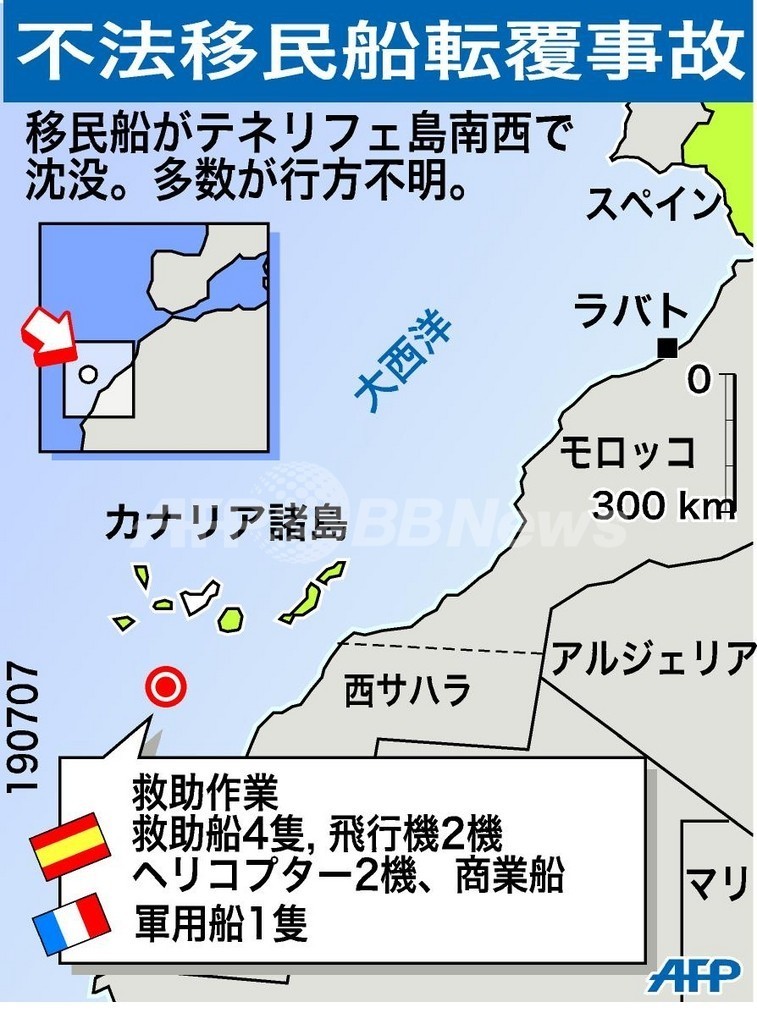 ニュース 社会 図解 不法移民船が転覆したカナリア諸島周辺の地図 2007年7月23日 19:08 発信地:サンタ・クルス・デ・テネリフェ/フランス [ ヨーロッパ フランス ] このニュースをシェア 2007年7月20日に不法移民船が転覆したカナリア諸島周辺の地図。(c)AFP 【7月23日 AFP】図は、20日に不法移民船が転覆したカナリア諸島周辺の地図。約50人が行方不明となり、捜索活動が続いている。(c)AFP<ニュース解説画像一覧へ> 社会 一覧へ> メディア・報道関係・法人の方向け 写真・動画 購入のお問合せ>