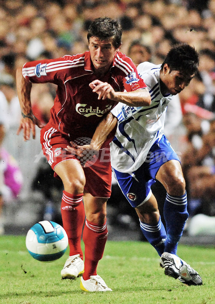 スポーツ サッカー リバプール 南華足球隊を降し決勝へ 2007年7月25日 11:37 発信地:香港 このニュースをシェア ‹ › ❮ 1/7 ❯ 南華足球隊の選手をドリブルで抜き去るリバプールのハリー・キューウェル(%%Harry Kewell%%、左)。(c)AFP/PHILIPPE LOPEZ 画像作成中 ! 【7月25日 AFP】サッカー、バークレイズ・アジアトロフィー(Barclays Asia Trophy)、南華足球隊(South China)vsリバプール(Liverpool)。試合はリバプールが3-1で勝利し、27日に行われるポーツマス(portsmouth)との決勝戦へ進出を果たした。(c)AFP サッカー 一覧へ> メディア・報道関係・法人の方向け 写真・動画 購入のお問合せ>