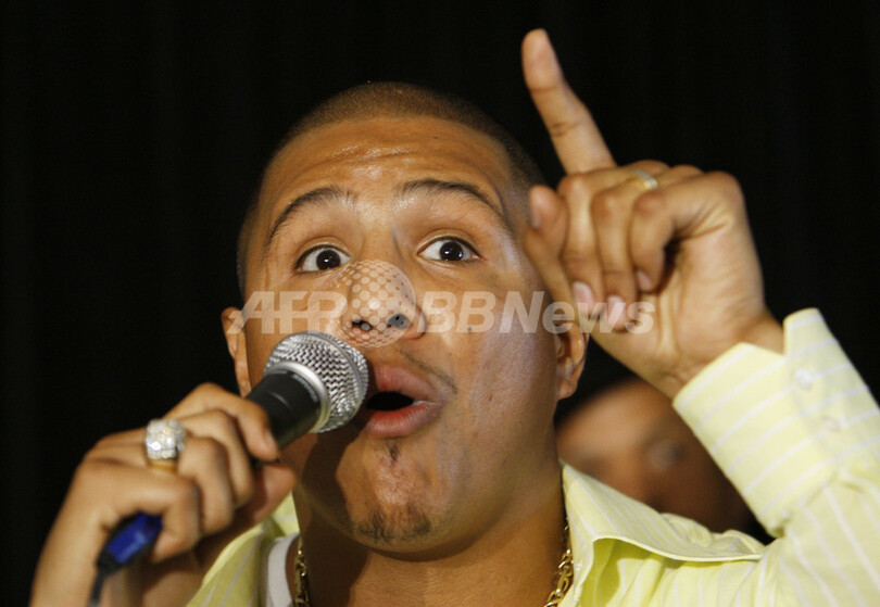スポーツ スポーツ その他 バルガスとマヨルガ アクリル板で仕切られ記者会見に臨む 2007年7月26日 9:57 発信地:ニューヨーク/米国 [ 北米 米国 ] このニュースをシェア ‹ › ❮ 2/3 ❯ マイクパフォーマンスをするバルガス。(c)AFP/STAN HONDA 画像作成中 ! 【7月26日 AFP】9月8日にロサンゼルスで対戦するスーパー・ウェルター級12位のフェルナンド・バルガス(Fernando Vargas、米国)と同級8位のリカルド・マヨルガ(Ricardo Mayorga、ニカラグア)が記者会見を行った。7月11日に行われた記者会見では両者が殴りあう乱闘が起こったため、今回は両陣営の間にアクリル樹脂板が置かれた。(c)AFP/STAN HONDA スポーツ その他 一覧へ> メディア・報道関係・法人の方向け 写真・動画 購入のお問合せ>