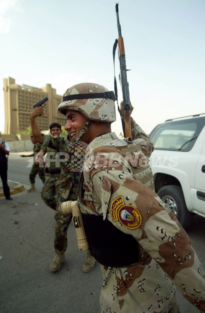 スポーツ サッカー 大会初の決勝進出に沸くイラクのサポーター 2007年7月26日 4:39 発信地:バグダッド/イラク [ 中東・北アフリカ イラク ] このニュースをシェア ‹ › ❮ 2/5 ❯ チームの勝利に歓喜するイラクの陸軍。(c)AFP/ALI YUSSEF 画像作成中 ! 【7月26日 AFP】サッカー、第14回アジアカップ(Asian Cup)・準決勝、イラクvs韓国。PK戦の末に韓国を4-3で破り、初の決勝進出を果たしたイラクのサポーターが、同国の首都バグダッド(Baghdad)で歓喜に沸いた。(c)AFP サッカー 一覧へ> メディア・報道関係・法人の方向け 写真・動画 購入のお問合せ>