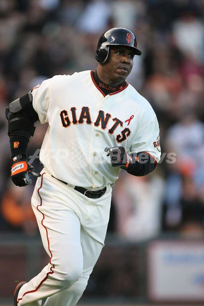 【7月28日 AFP】07MLB、サンフランシスコ・ジャイアンツ(San Francisco Giants)vsアトランタ・ブレーブス(Atlanta Braves)。4番・左翼で先発出場したジャイアンツのバリー・ボンズ(Barry Bonds)は、1回裏にハンク・アーロン(Hank Aaron)氏の持つメジャー歴代最多本塁打記録755本にあと1本と迫る通算754本目となる第20号ソロホームランを放った。試合はジャイアンツが12-10で乱打戦を制した。(c)AFP/Getty Images