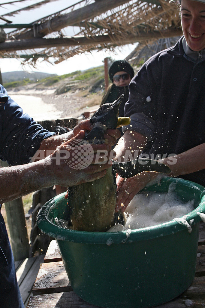 【7月29日 AFP】ウルグアイの首都モンテビデオ(Montevideo)から140キロ離れたマルドナルド(Maldonado)の海岸で28日、油にまみれたマゼランペンギン50羽が漂着しているのが見つかり、NGO団体SOS Fauna Marinaのメンバーらによって洗浄された。