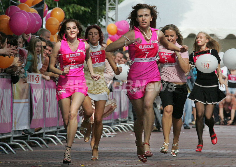 ニュース ライフ こぼれ話 モスクワでハイヒール短距離レース開催 2007年7月29日 9:13 発信地:モスクワ/ロシア [ ロシア・CIS ロシア ] このニュースをシェア ‹ › ❮ 1/5 ❯ 2007年7月28日、モスクワ(Moscow)で開催されたハイヒール短距離レースの参加者。(c)AFP/ALEXANDER NEMENOV 画像作成中 ! 【7月29日 AFP】モスクワ(Moscow)で28日、ハイヒールを履いた女性による短距離レースが開催された。最低9センチのヒールを履くことがレース参加の条件で、優勝者には10万ルーブル(約47万円)の商品券が贈呈される。(c)AFP ライフ 一覧へ> メディア・報道関係・法人の方向け 写真・動画 購入のお問合せ>