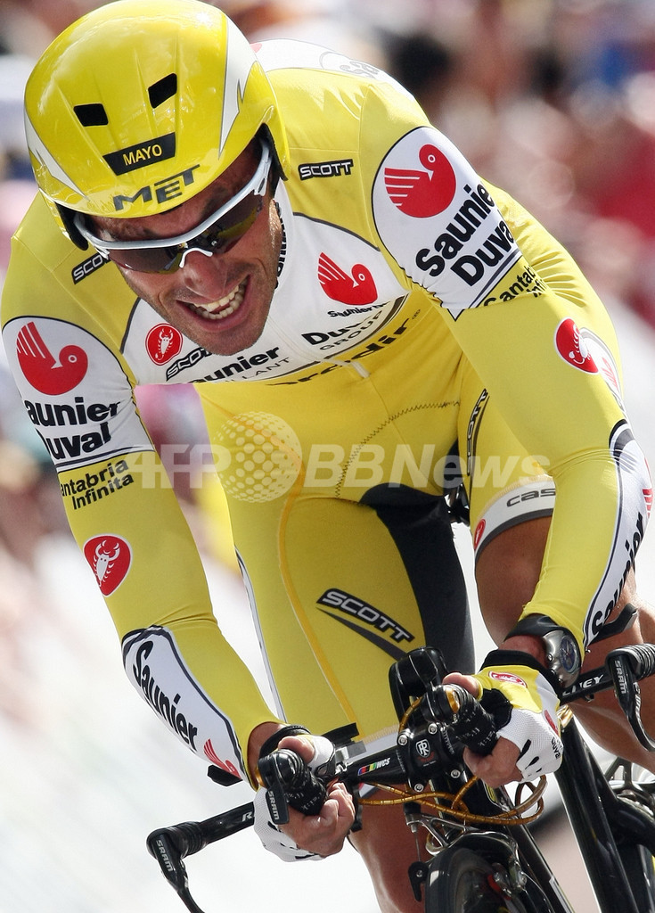 マヨは、6月に第90回ジロ・デ・イタリア(2007 Giro d’Italia)のドーピング検査で2006年のツール・ド・フランス(2006 Tour de France)で総合優勝を果たしたフロイド・ランディス(Floyd Landis、米国)からも検出された筋肉増強作用のある男性ホルモンのテストステロン(testosterone)の陽性反応が検出されていたと報じられドーピングの疑いが持たれていたが、UCIはこれに対しマヨはステージ優勝を飾った第19ステージ終了後にドーピング検査を受けており、ドーピング規定には違反していないとして処分を見送っていた。(c)AFP
