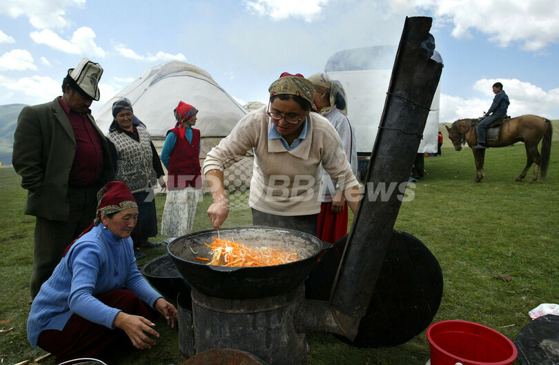 ニュース ライフ キルギス高地で民族の祭典、馬競技や料理で観光客魅了 2007年7月31日 14:10 発信地:Sarala-Saz/キルギス [ ロシア・CIS キルギス ] このニュースをシェア ‹ › ❮ 6/6 ❯ 2007年7月28日、キルギスの首都ビシケク(Bishkek)から約300キロ離れた海抜3000メートルのSarala-Saz高地で開かれた民族の祝祭で伝統料理を作る女性。(c)AFP/VYACHESLAV OSELEDKO 画像作成中 ! 【7月31日 AFP】キルギスの首都ビシケク(Bishkek)から約300キロ離れた海抜3000メートルのSarala-Saz高地で28日、民族の祝祭が行われ、訪れる観光客のために馬の競技が行われ、伝統料理がふるまわれた。(c)AFP ライフ 一覧へ> メディア・報道関係・法人の方向け 写真・動画 購入のお問合せ>