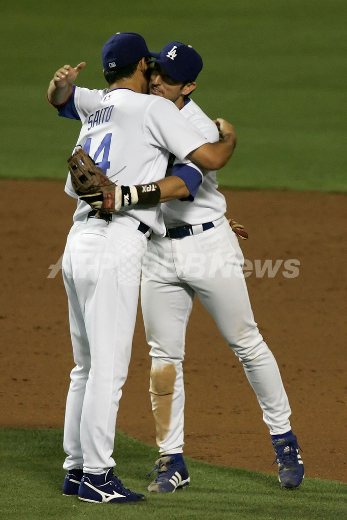 スポーツ 野球 斉藤隆 1回を無失点で今季27セーブ目 2007年8月2日 15:17 発信地:ロサンゼルス/米国 [ 北米 米国 ] このニュースをシェア ‹ › ❮ 5/6 ❯ チームメイトのノマー・ガルシアパーラ(%%Nomar Garciaparra%%、右)と抱き合う斉藤。(c)AFP/Getty Images Lisa Blumenfeld 画像作成中 ! 【8月2日 AFP】07MLB、ロサンゼルス・ドジャース(Los Angeles Dodgers)vsサンフランシスコ・ジャイアンツ(San Francisco Giants)。9回から4番手として登板したドジャースの斉藤隆(Takashi Saito)は、1回を無安打無失点に抑え、今季27セーブ目を挙げた。試合はドジャーズが6-4でジャイアンツを降し、連敗を3で止めた。(c)AFP/Getty Images 野球 一覧へ> メディア・報道関係・法人の方向け 写真・動画 購入のお問合せ>