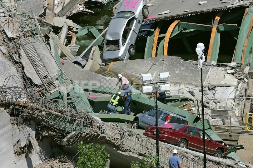 ニュース 社会 米高速道路橋の崩落事故、捜索活動が再開 2007年8月4日 7:03 発信地:ミネアポリス/米国 [ 北米 米国 ] このニュースをシェア ‹ › ❮ 2/5 ❯ 2007年8月3日、米ミネソタ(Minnesota)州ミネアポリス(Minneapolis)の高速道路橋の崩落現場で行われた現場検証の様子。(c)AFP/Getty Images/Mark Wilson 画像作成中 ! 【8月4日 AFP】米ミネソタ(Minnesota)州ミネアポリス(Minneapolis)の高速道路橋の崩落現場では3日、行方不明者の捜索活動が再開された。しかし、ミシシッピ(Mississippi)川の激しい流れと多数のコンクリート塊に阻まれ、捜索活動は難航している。(c)AFP 社会 一覧へ> メディア・報道関係・法人の方向け 写真・動画 購入のお問合せ>