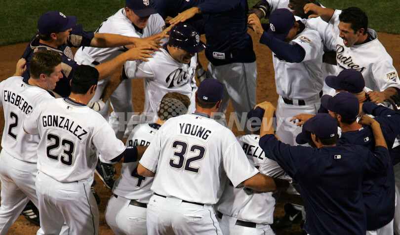 スポーツ 野球 パドレス ジャイアンツにサヨナラ勝ち 2007年8月4日 17:54 発信地:サンディエゴ/米国 [ 北米 米国 ] このニュースをシェア ‹ › ❮ 14/15 ❯ サヨナラ勝ちを喜ぶパドレスの選手たち。(c)AFP/Getty Images Donald Miralle 画像作成中 ! 【8月4日 AFP】07MLB、サンディエゴ・パドレス(San Diego Padres)vsサンフランシスコ・ジャイアンツ(San Francisco Giants)。試合は延長10回の末、パドレスが4-3でジャイアンツからサヨナラ勝ちを収めた。(c)AFP/Getty Images 野球 一覧へ> メディア・報道関係・法人の方向け 写真・動画 購入のお問合せ>