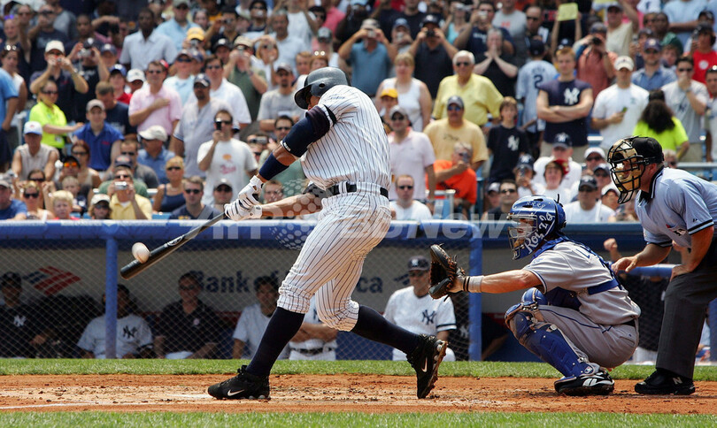 【8月5日 AFP】07MLB、ニューヨーク・ヤンキース(New York Yankees)vsカンザスシティ・ロイヤルズ(Kansas City Royals)。試合はヤンキースが16-8でロイヤルズを降した。