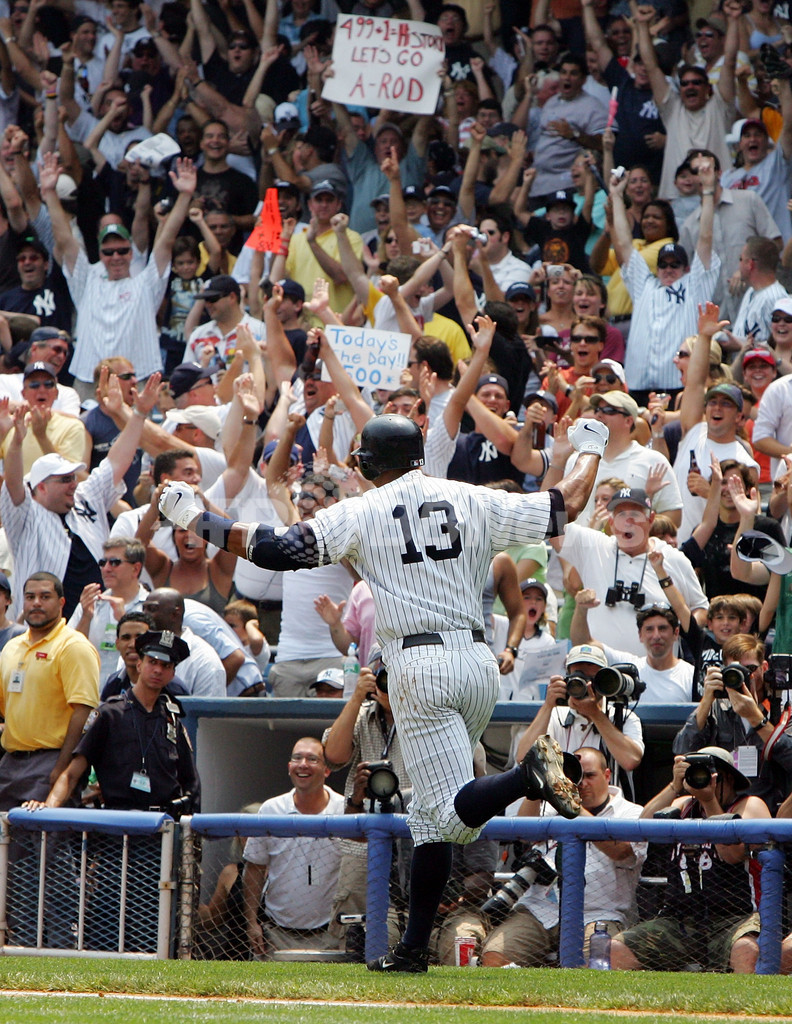 バッターボックスから打球の行方を追っていたアレックス・ロドリゲスは、ファールでないことを確認した後にゆっくりと走り出し、大声援の中両手を突き上げ喜びを表した。