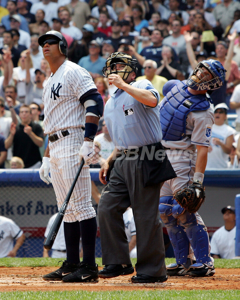 【8月5日 AFP】07MLB、ニューヨーク・ヤンキース(New York Yankees)vsカンザスシティ・ロイヤルズ(Kansas City Royals)。試合はヤンキースが16-8でロイヤルズを降した。