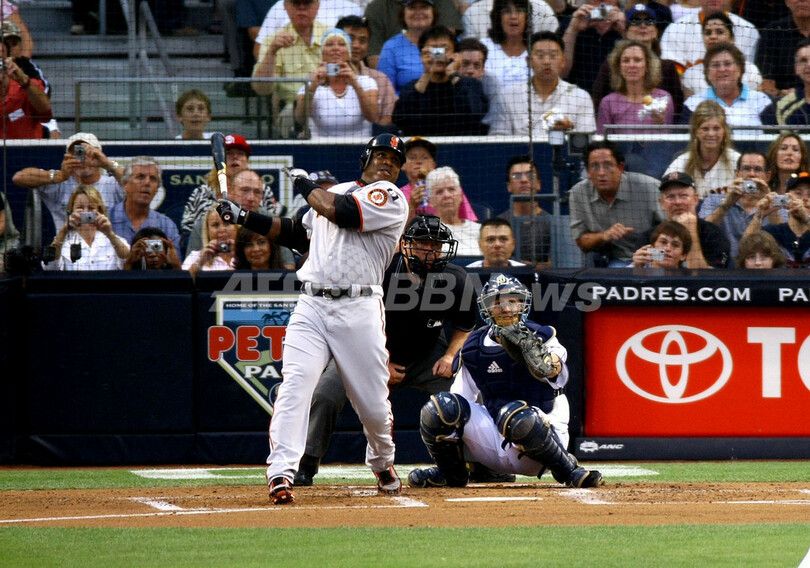 サンディエゴのファンは、殆どが立ち上がりブーイングをかき消すのに十分なほど大きな喝采でボンズの推定382フィート(約116メートル433センチ)の本塁打を祝福した。(c)AFP