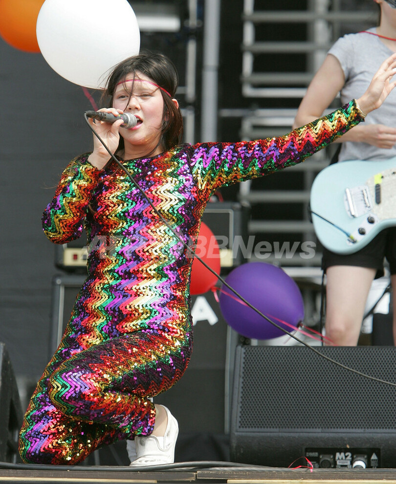 【8月6日 AFP】ボルチモア(Baltimore)のピムリコ競馬場(Pimlico Race Course)で2日間開催される、携帯電話事業社ヴァージン・モバイル(Virgin Mobile)主催の音楽フェス「ヴァージン・フェスティバル2007(Virgin Festival 2007)」の2日目を迎えた5日、CSSことカンセイ・ジ・セール・セクシー(Cansei de Ser Sexy)が登場した。(c)AFP/Getty Images