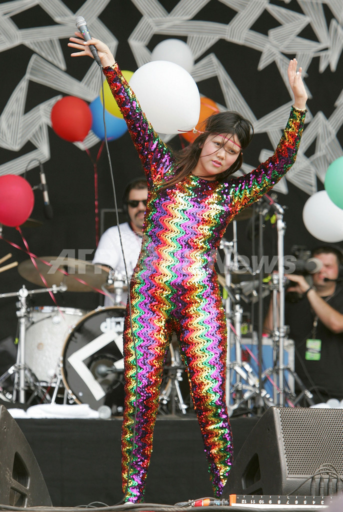 【8月6日 AFP】ボルチモア(Baltimore)のピムリコ競馬場(Pimlico Race Course)で2日間開催される、携帯電話事業社ヴァージン・モバイル(Virgin Mobile)主催の音楽フェス「ヴァージン・フェスティバル2007(Virgin Festival 2007)」の2日目を迎えた5日、CSSことカンセイ・ジ・セール・セクシー(Cansei de Ser Sexy)が登場した。(c)AFP/Getty Images