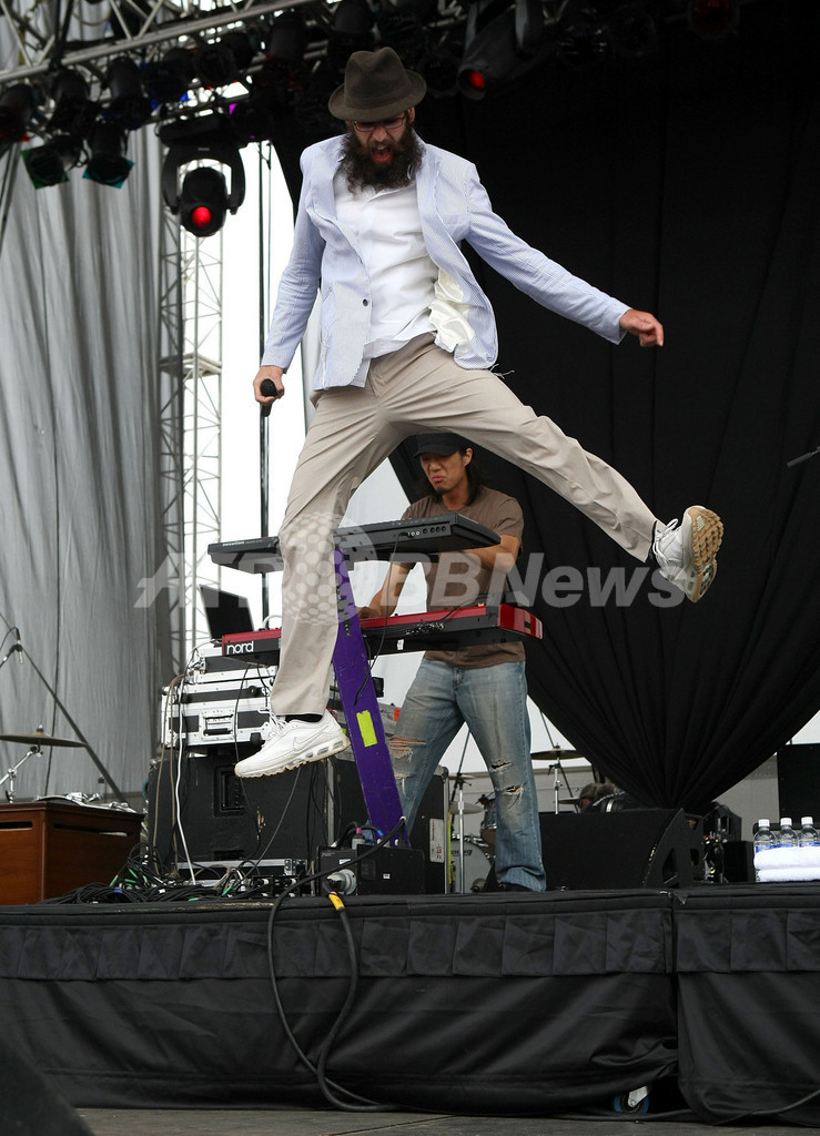 【8月6日 AFP】ボルチモア(Baltimore)のピムリコ競馬場(Pimlico Race Course)で2日間開催される、携帯電話事業社ヴァージン・モバイル(Virgin Mobile)主催の音楽フェス「ヴァージン・フェスティバル2007(Virgin Festival 2007)」の2日目を迎えた5日、レゲエ・ミュージシャン、マティスヤフ(Matisyahu)