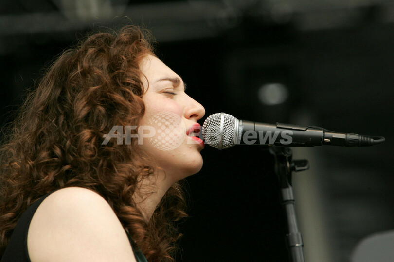 【8月6日 AFP】ボルチモア(Baltimore)のピムリコ競馬場(Pimlico Race Course)で2日間開催される、携帯電話事業社ヴァージン・モバイル(Virgin Mobile)主催の音楽フェス「ヴァージン・フェスティバル2007(Virgin Festival 2007)」の2日目を迎えた5日、シンガー・ソングライター/ピアニストのレジーナ・スペクター(Regina Spektor)が登場し、パフォーマンスを披露した。(c)AFP/Getty Images