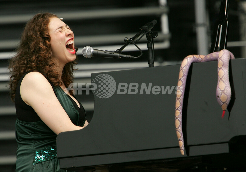 【8月6日 AFP】ボルチモア(Baltimore)のピムリコ競馬場(Pimlico Race Course)で2日間開催される、携帯電話事業社ヴァージン・モバイル(Virgin Mobile)主催の音楽フェス「ヴァージン・フェスティバル2007(Virgin Festival 2007)」の2日目を迎えた5日、シンガー・ソングライター/ピアニストのレジーナ・スペクター(Regina Spektor)が登場し、パフォーマンスを披露した。(c)AFP/Getty Images