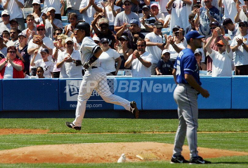スポーツ 野球 松井秀喜 メジャー通算100号を記録 2007年8月6日 7:47 発信地:ニューヨーク/米国 [ 北米 米国 ] このニュースをシェア ‹ › ❮ 3/3 ❯ 3回裏にメジャー通算100号本塁打を放ちベースをまわる松井秀喜。(c)AFP/Getty Images Jim McIsaac 画像作成中 ! 【8月6日 AFP】07MLB、ニューヨーク・ヤンキース(New York Yankees)vsカンザスシティ・ロイヤルズ(Kansas City Royals)。5番・左翼で先発出場したヤンキースの松井秀喜(Hideki Matsui)は、3回にシーズン22本目となるソロ本塁打を放ち、メジャー通算100号本塁打を達成した。試合はヤンキースが8-5でロイヤルズを降し3連勝を飾った。(c)AFP/Getty Images 野球 一覧へ> メディア・報道関係・法人の方向け 写真・動画 購入のお問合せ>