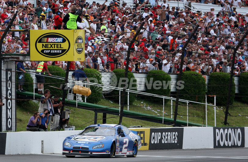 【8月6日 AFP】NASCAR・ネクステルカップ・シリーズ(NASCAR Nextel Cup Series)・第21戦、ペンシルベニア500(Pennsylvania 500)、決勝。2番グリッドからスタートしたペンスキー・レーシング・サウス(Penske Racing South)のカート・ブッシュ(Kurt Busch)は、シーズン初優勝を果たし195ポイント(200周)を獲得した。(c)AFP/Getty Images
