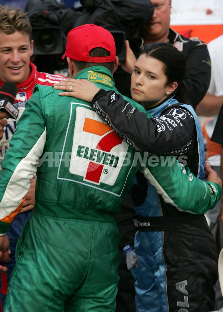 【8月6日 AFP】IRLインディカー・第13戦、ファイアストン・インディ400(Firestone Indy 400)、決勝。8番グリッドからスタートしたアンドレッティ・グリーン・レーシング(Andretti Green Racing)のトニー・カナーン(Tony Kanaan)は、優勝を果たし50ポイント(200周)を獲得した。雨で荒れたレースの最終ラップでカナーンは、チームメイトのマルコ・アンドレッティ(Marco Andretti)との劇的な争いを制し、シーズン3勝目を挙げた。(c)AFP/Getty Images