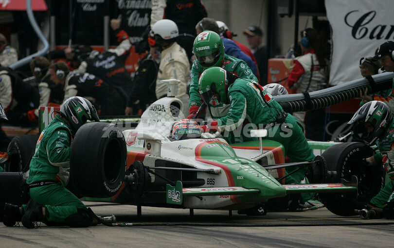 【8月6日 AFP】IRLインディカー・第13戦、ファイアストン・インディ400(Firestone Indy 400)、決勝。8番グリッドからスタートしたアンドレッティ・グリーン・レーシング(Andretti Green Racing)のトニー・カナーン(Tony Kanaan)は、優勝を果たし50ポイント(200周)を獲得した。雨で荒れたレースの最終ラップでカナーンは、チームメイトのマルコ・アンドレッティ(Marco Andretti)との劇的な争いを制し、シーズン3勝目を挙げた。(c)AFP/Getty Images