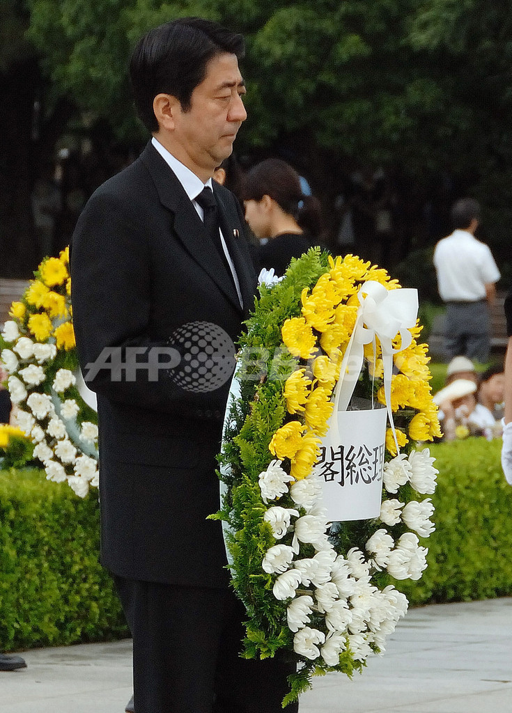 参列者らは、原爆投下の午前8時15分に1分間の黙とうを捧げた。その後、安倍首相は原爆の悲劇を繰り返さない決意を強くしたと述べ、「今後とも、憲法の規定を遵守(じゅんしゅ)し、国際平和を誠実に希求し、非核三原則を堅持していく」と誓った。
