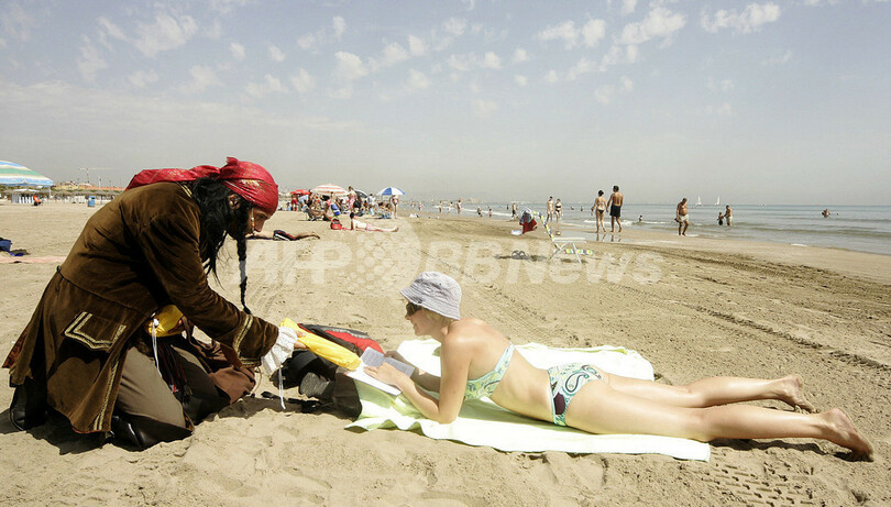 ニュース ライフ こぼれ話 本を読もう!小説の登場人物がビーチに出現 2007年8月9日 8:10 発信地:バレンシア/スペイン [ ヨーロッパ スペイン ] このニュースをシェア ‹ › ❮ 4/5 ❯ 2007年8月6日、スペインのバレンシア(Valencia)の浜辺で、有名な小説の登場人物に扮して読書中の海水浴客に本をプレゼントする俳優。(c)AFP/Jose Jordan 画像作成中 ! 【8月9日 AFP】スペインはこの夏、人々に読書の習慣をつけてもらおうと、「海岸で読書」キャンペーンに取り組んでいる。その一環として、バレンシア(Valencia)の浜辺では、有名な小説に登場する人物に扮した俳優たちが、海水浴客に本を贈るなどした。(c)AFP ライフ 一覧へ> メディア・報道関係・法人の方向け 写真・動画 購入のお問合せ>