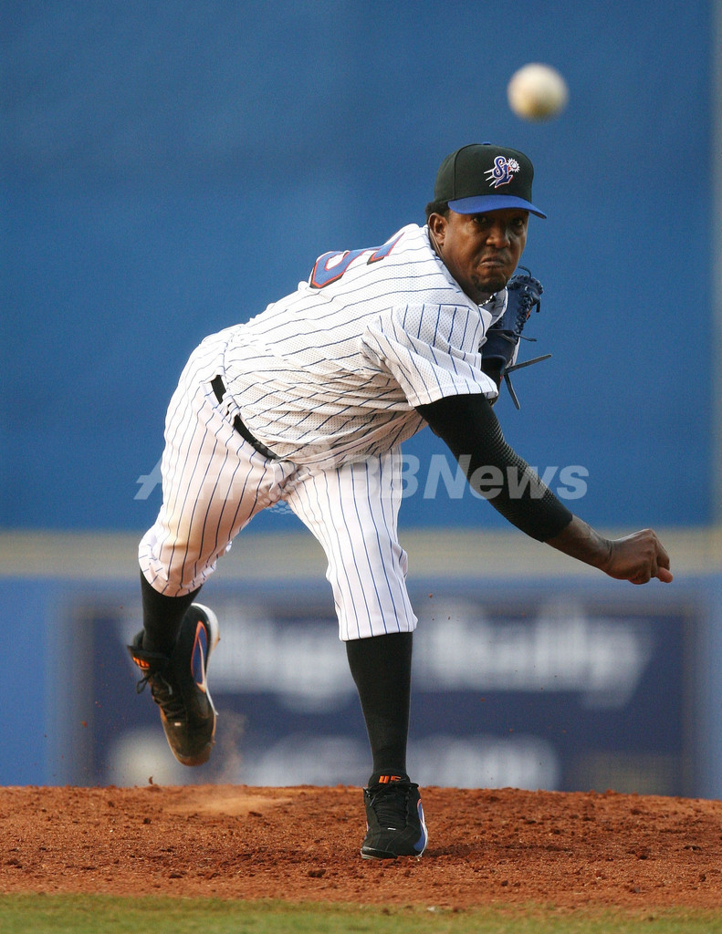 【8月9日 AFP】MLB、ニューヨーク・メッツ(New York Mets)に所属するペドロ・マルチネス(Pedro Martinez)は8日、メッツ傘下の1Aセントルイス・メッツ(Saint Lucie Mets)でレイクランド・タイガース(Lakeland Tigers)戦に先発し、右肩の手術から復帰後初登板を果たした。ペドロ・マルチネスは2本塁打を含む6安打5失点を喫し3回でマウンドを降り、試合はセントルイス・メッツが6-9で敗れた。(c)AFP/Getty Images